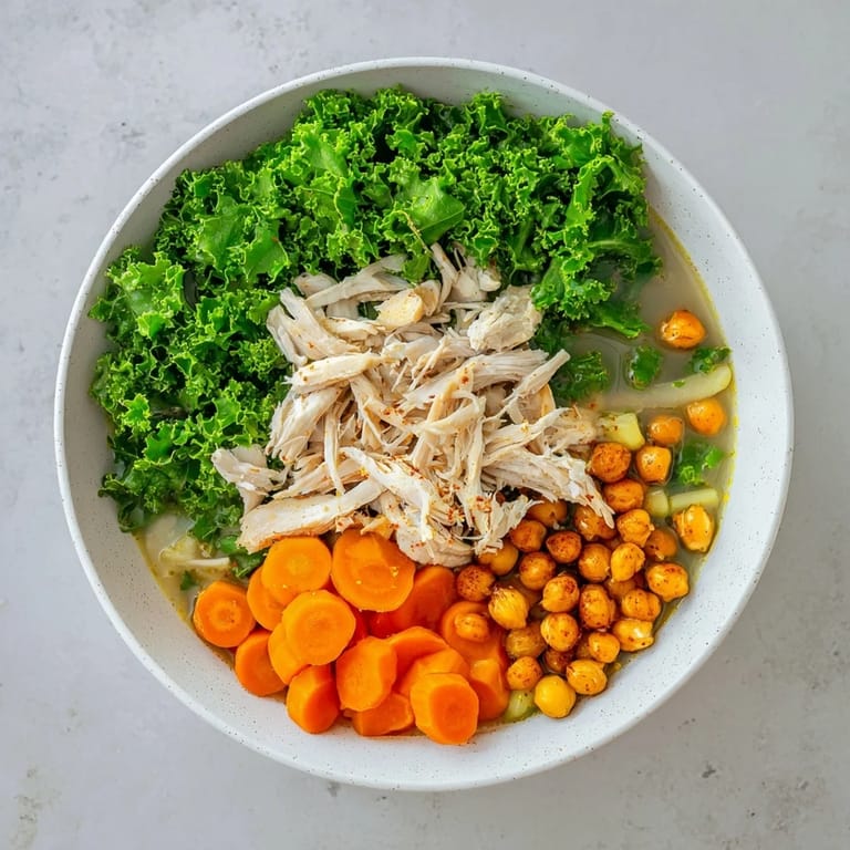 Save A nourishing, hearty soup featuring tender chicken, vibrant kale, and crunchy spiced chickpeas & the perfect healthy comfort food twist.