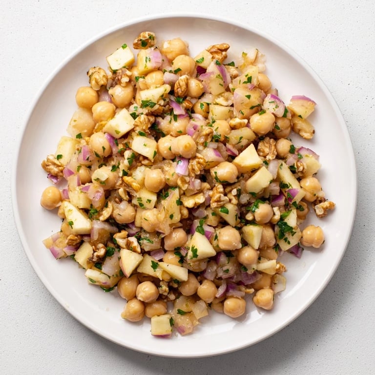 Rinse your chickpeas under cold water until the foam disappears and they feel clean. Dice your apples right before mixing—they'll brown if they sit too long, though honestly a little oxidation doesn't hurt the flavor.