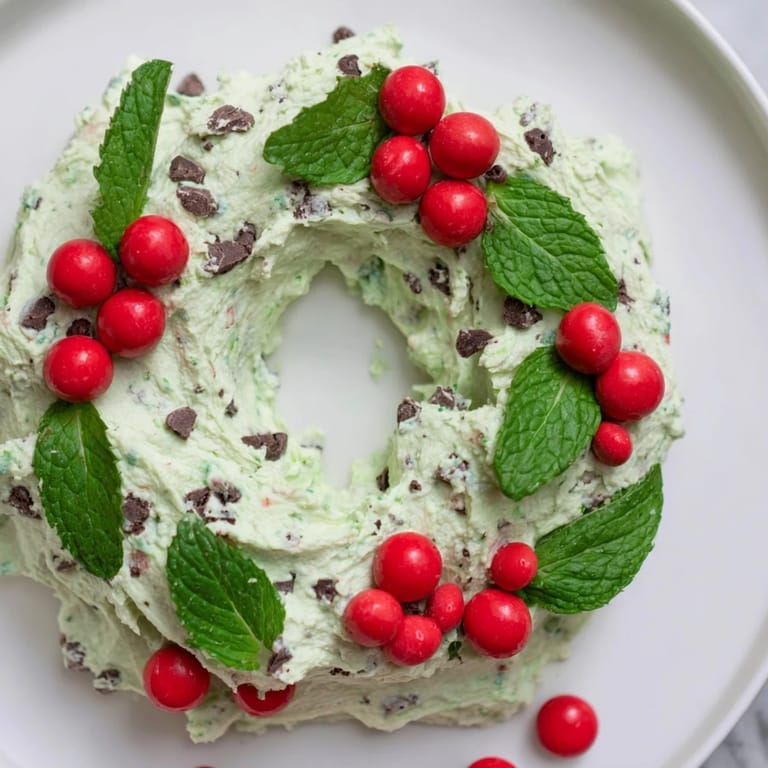 Save A festive, creamy dessert dip with fresh mint and chocolate chips shaped into a cheerful holiday wreath& perfect for sharing at parties.