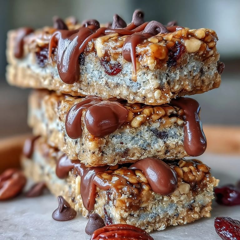 These chewy granola bars combine oats, mixed nuts, and dried fruit for a nutritious snack that requires no baking. A warm mix of honey or maple syrup with nut butter binds the dry ingredients, creating bars that set after chilling. Optional add-ins like chocolate chips and seeds add extra flavor and texture. Ready in just over an hour, they’re convenient, wholesome, and perfect for picnics, hikes, or anytime you need a quick energy boost.
