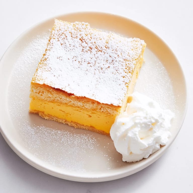 This pumpkin magic cake invites the essence of autumn into your kitchen with cinnamon, nutmeg, and ginger perfectly balanced to complement the smooth pumpkin purée. The cake’s delicate texture emerges from a liquid batter baked to just the right moment, allowing the custard to set beneath a delicate sponge—something truly special for pumpkin lovers.