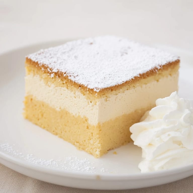 Use room temperature eggs for a smooth batter and to help the cake rise evenly. Keep an eye on baking time to ensure the custard layer stays creamy and does not overcook. Refrigerating the cake before slicing allows the layers to set perfectly for clean slices.
