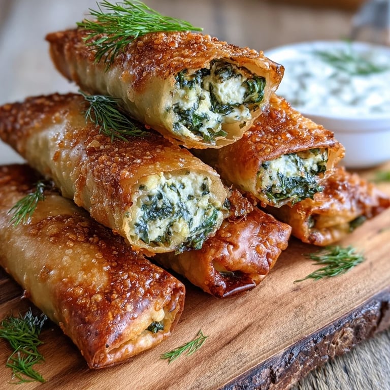 My neighbor showed up with a tray of these one evening, completely unannounced. She'd been experimenting with leftover spring roll wrappers and a craving for spanakopita, and somehow the two collided into something I couldn't stop eating. The crisp gave way to warm, tangy filling that tasted like every Greek taverna I'd ever loved, but with a handheld convenience that made them vanish faster than I could ask for the recipe. She laughed and said she'd only made them because she was too lazy to deal with phyllo dough.