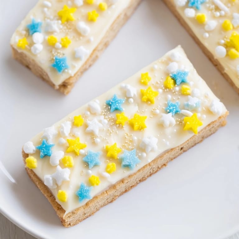For a fresh twist, stir 1 tsp finely grated lemon zest into the shortbread base dough. You can also mix white chocolate chips into the dough for added richness and texture. Adjust sprinkles and decorations to match your celebration's theme or personal taste.