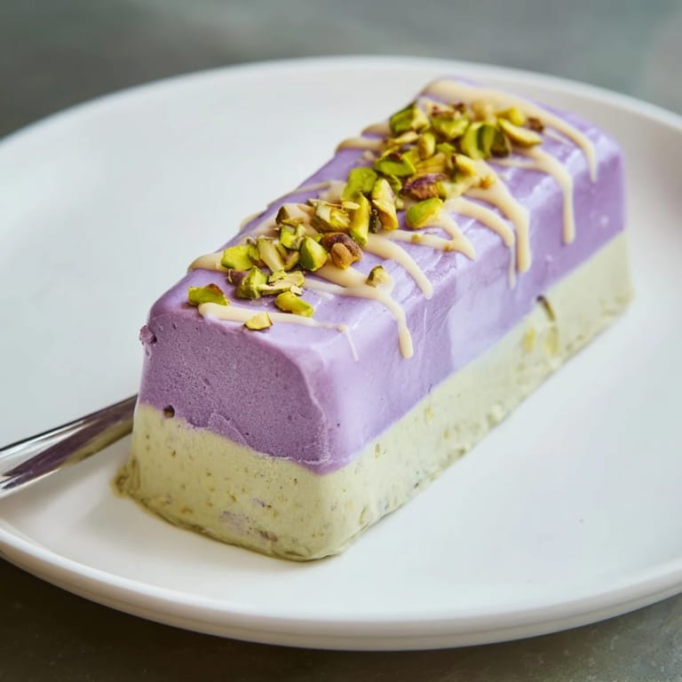 Save Creamy, vibrant ice cream bars featuring sweet ube and nutty pistachio, layered for a delightful contrast in flavor and color. Perfect for a refreshing summer dessert or an impressive treat for gatherings.