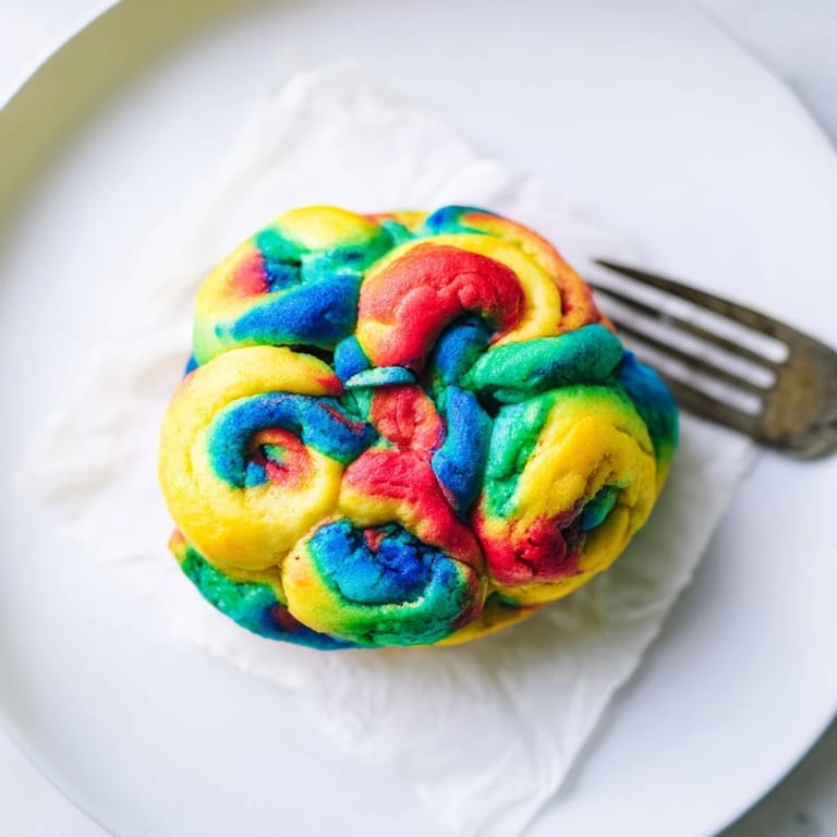 Save A light, fluffy, and visually stunning cloud bread featuring vibrant rainbow colors—perfect for a fun breakfast or party treat.
