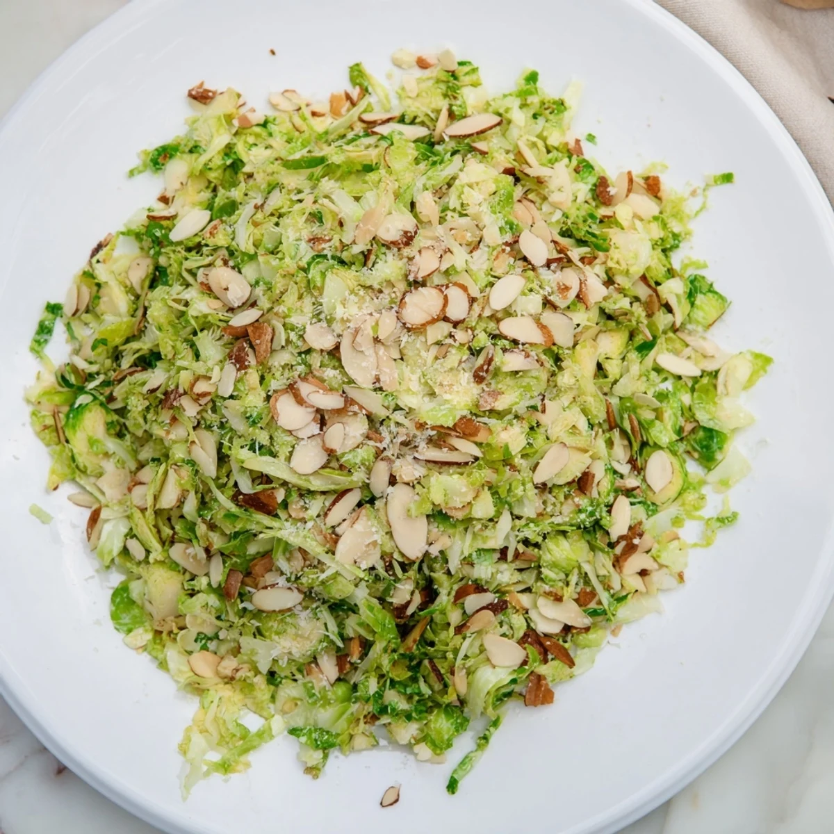 Save Experience the bright, zesty crunch of our Crunchy Lemon Parmesan Brussels Sprouts Salad—a modern European delight perfect for a quick, refreshing meal. This salad brings together finely shredded Brussels sprouts with the lively zing of lemon dressing, toasted almonds for a satisfying crunch, and generous shavings of Parmesan cheese that add a savory depth. Ideal for those who crave a fresh, healthy dish without cooking, this salad showcases simple yet vibrant flavors making it a perfect choice for any season.