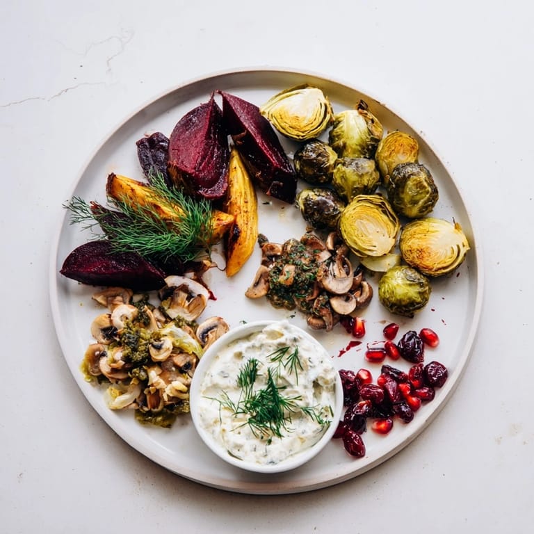 - Roasted Vegetables: 2 small beets peeled and cut into wedges 1 small fennel bulb sliced 1 cup Brussels sprouts halved 2 tbsp olive oil salt and pepper to taste 2 tsp fresh rosemary chopped