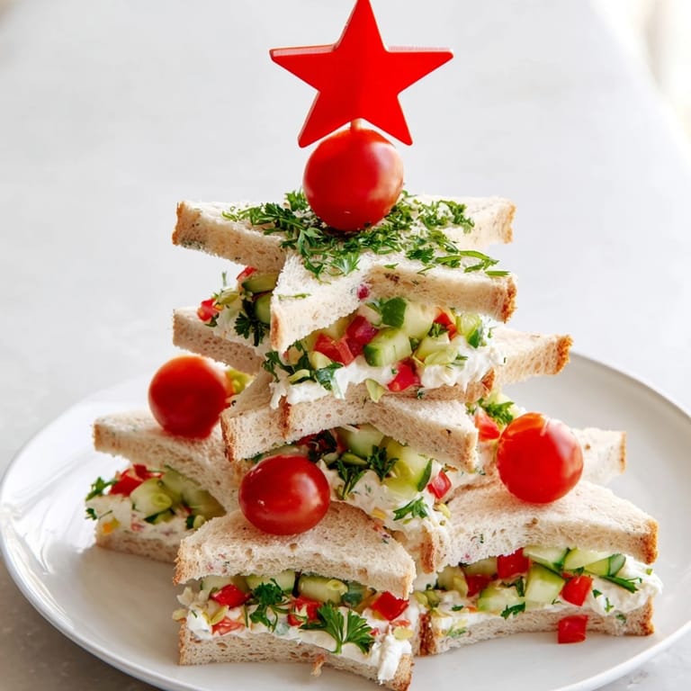 Save Festive, bite-sized sandwiches layered in star shapes to resemble mini Christmas trees—perfect for holiday gatherings and kids parties.
